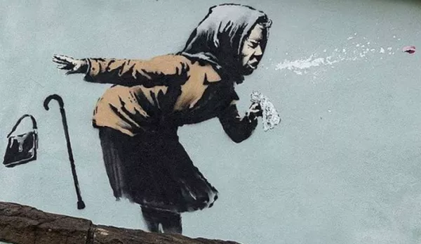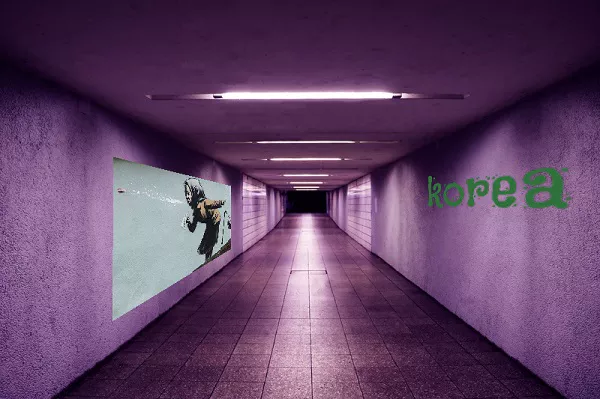아래의 이미지는 벽면에 붙여볼 샘플 이미지로 얼굴 없는 화가로 알려진 뱅크시의 작품입니다.