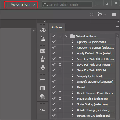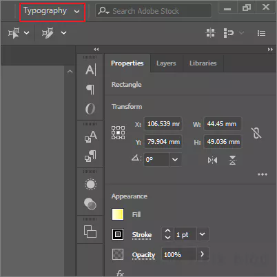일러스트레이터 패널, 작업 화면 구성의 선택 및 메뉴 설명