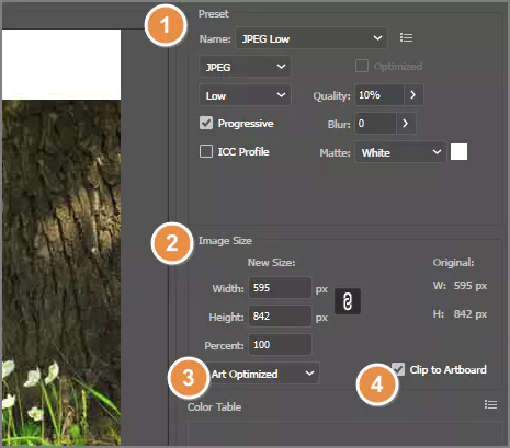 일러스트레이터, Save for Web에서 jpg 등의 저장 이미지 상세 설정하기