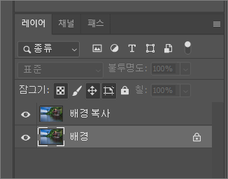 2. 원본 레이어를 우클릭하여 레이어 복제를 클릭하거나, 단축키 Ctrl+J를 눌러 레이어를 복제합니다.