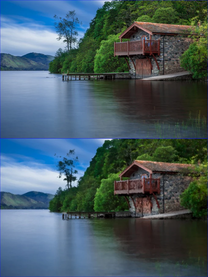 위쪽이 원본이고 아래쪽이 수채화 효과를 입힌 이미지입니다.
