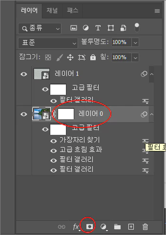 이렇게 하면 원본 레이어 아래로 필터 레이어들이 생성됩니다.
