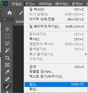11. 새 레이어를 추가하고 흰색 또는 밝은 회색, 밝은 노란색 등의 종이 재질과 유사한 색을 전경 색 또는 배경색으로 지정한 다음 상단 메뉴의 편집 > 칠을 클릭한 다음 해당 색상으로 지정해 줍니다.