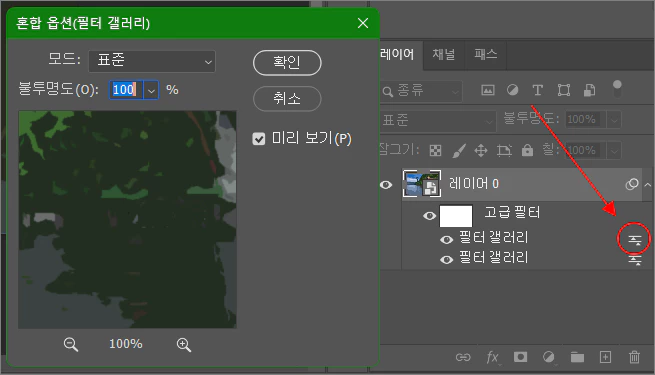 스마트 오브젝트 레이어(고급 개체 레이어)로 변경하는 이유는 원본에 직접적인 변경을 가하지 않고 적용된 필터 효과들이 별도의 하부 레이어로 남겨지므로 원본 보존 및 필터 작업에 유리한 측면이 있습니다.