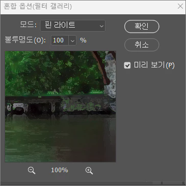 6. 혼합 옵션 창이 열리면 핀 라이트 모드로 변경한 후 확인을 눌러 줍니다.