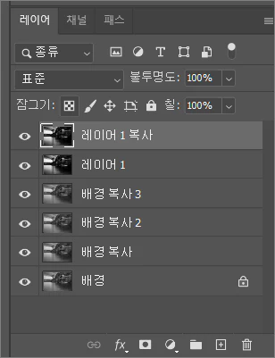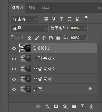 사실적인 느낌보다 조금더 수묵화의 느낌을 살리기 위해 복제된 레이어를 다시 한 번 복제한 다음 복제된 레이어를 또 한번 복제해 줍니다.