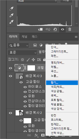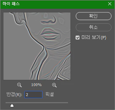 20. 방금 복제해 올린 레이어가 선택된 상태에서 필터 > 기타 > 하이패스를 선택합니다.