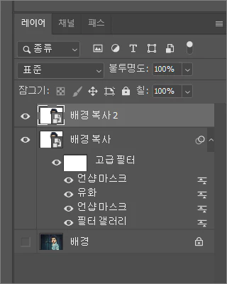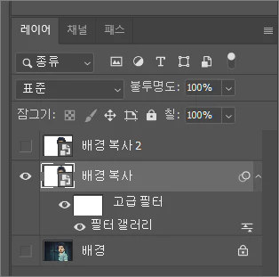 이제 레이어 창을 보면 고급 필터에 포스터 갤러리 효과가 적용되어 있는 것을 볼 수 있습니다.
