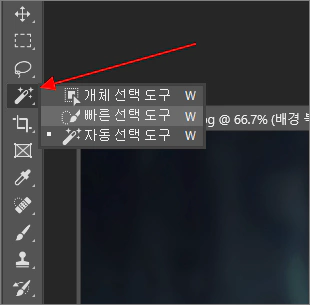 2. 좌측의 도구 막대에서 빠른 선택 도구를 클릭합니다.