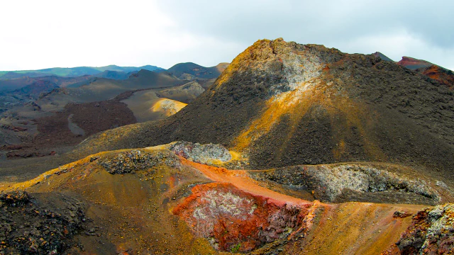 에콰도르 서쪽 갈라파고스 군도의 시에라 네그라 화산 이미지입니다.
