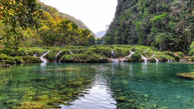 과테말라에 있는 계단식 강인 세묵 참페이(Semuc Champey)의 모습입니다.