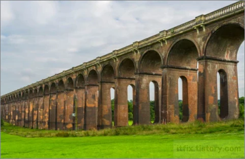 영국 오즈밸리 고가교의 교각 부분 이미지로 이해를 위한 오즈밸리 고가교 전체 이미지 축소본은 아래와 같습니다.