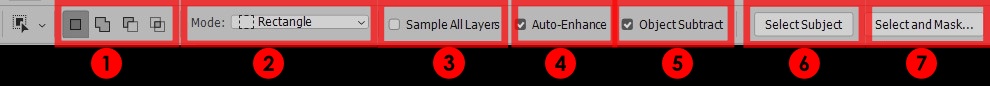 포토샵, 개체 선택 도구 옵션바의 기능 설명