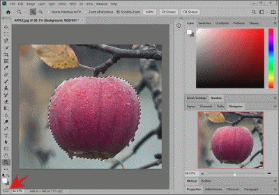 이 버튼을 누른 다음 좌측의 도구 막대에서 빠른 마스크 모드(Edit in Quick Mask Mode)에서 이미지를 보면 단 한 번의 드래그로 분리되어 있는 배경과 오브젝트를 확인할 수 있습니다.