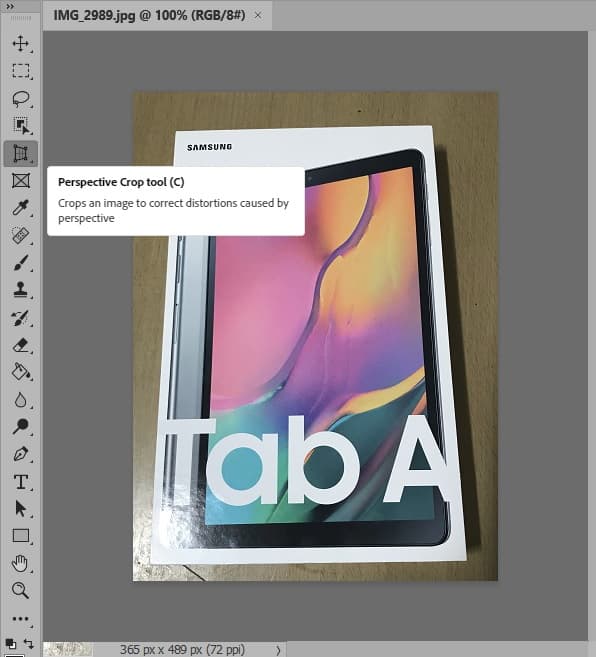 그다음 좌측의 도구 막대에서 원근 자르기 툴(Perspective Crop tool)을 선택합니다.