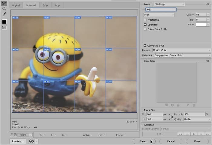 포토샵에서는 이미지를 마치 퍼즐 조각처럼 원하는 개수만큼 잘라서 저장할 수 있습니다.