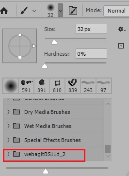 브러시중 위에서 두 번째에 있는 브러시를 다운로드하여 압축을 풀었습니다. 두 개의 압축파일로 반디집 등을 이용해 압축을 풀면 하나의 포토샵 브러시 파일인 webagitBS11d_2.abr 파일이 나옵니다.