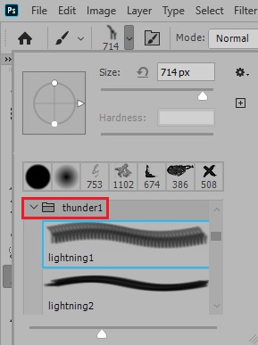 그러면, 아래처럼 브러시 목록에 추가된 번개 브러시들이 보이게 됩니다.