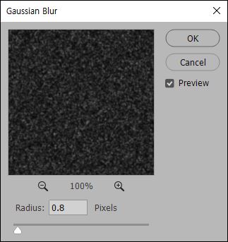 다시 한번, 눈의 지나치게 선명한 모습을 제거하고 약간은 흐릿하게 보이도록 하기 위해 필터에서 Blur > Gaussian Blur을 클릭합니다. 옵션 값은 대략 0.8 정도로 주면 적당한 것 같습니다.