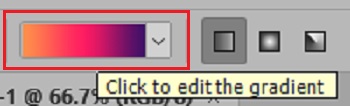 새로운 자신만의 그라디언트 툴을 만들기 위해서는 좌측의 도구 막대에서 그라디언트 툴이 선택된 상태에서 상단 메뉴바의 그라디언트 에디터(Gradient Editor) 영역을 클릭합니다.