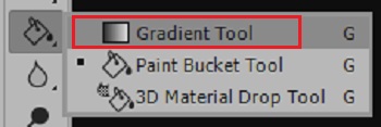 포토샵의 사이드에 있는 도구막대에서 그라디언트 툴의 위치는 색상을 채우는 버킷 툴과 함께 있습니다.