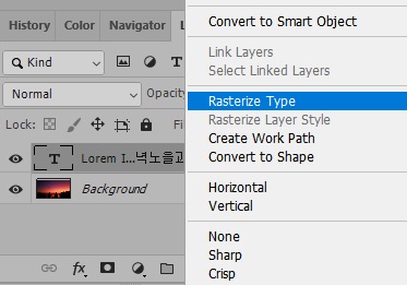 3. 문자 레이어를 이미지 레이어로 바꾸기