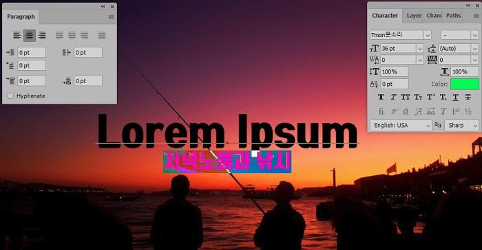 포토샵의 문장, 문자, 단락 관련 옵션들과 단축키