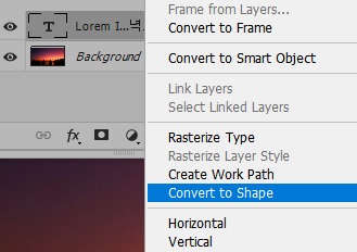 문자 레이어를 우클릭한 다음 Convert to Shape를 클릭하면 문자 속성이 사라지고 셰이프 레이어로 바뀌게 되며, 뒤틀기나 비틀기, 왜곡 등의 효과를 문자에 적용할 수 있게 됩니다.
