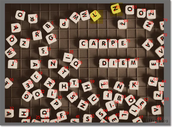 작업의 예를 들어 보겠습니다. 아래와 같이 많은 주사위가 어지럽게 흩어져 있는 이미지가 있습니다.