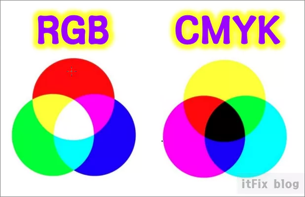 반면, CMYK란 인쇄업계에서 주로 사용하는 색분류로 Cyan(하늘색), Magenta(다홍색), Yellow(노랑), Black(검정)를 말하며 이는 색의 3원색인 빨강, 노랑, 파랑에 3가지 색상을 섞어 만들어도 구현할 수 있는 색상인 검은색은 잉크의 낭비를 막고 균일한 품질을 얻기 위해 고유의 검은색을 별도로 추가한 경우입니다.