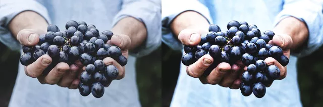 3. 위에서와 같이 Curves 그래프를 조정하여 보정한 이미지와 원본 이미지를 비교한 이미지입니다. 오른쪽 이미지가 Curves를 이용해 선명도를 교정한 이미지입니다.