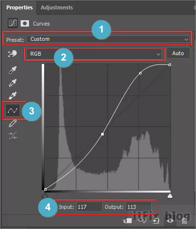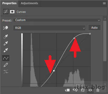Curves 그래프는 이미지의 명도와 채도 곡선을 나타내므로 이를 조절하여 이미지 선명도 향상을 이끌어 낼 수 있습니다. Curves 단축키는 Ctrl+M입니다.