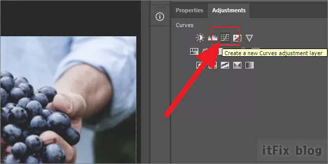 1. Adjustments 패널에서 Curves 아이콘을 클릭합니다.
