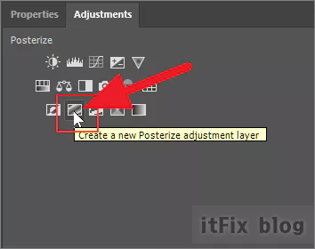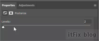다른 보정 효과들과 마찬가지로 상단 메뉴의 Adjutments에서 직접 이미지에 적용할 수 있지만 원본 손상을 방지하기 위해 가급적 우측의 Adjutments 패널의 Posterize 아이콘을 클릭해서 실행하는 것이 좋습니다. 이렇게 할 경우에는 별도의 Posterize 레이어가 생성되게 됩니다.
