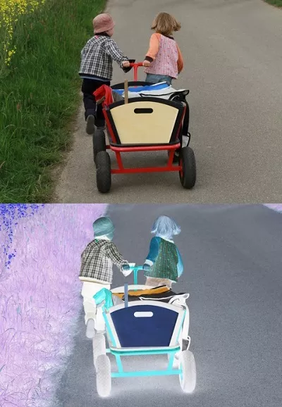 포토샵에서 불러온 다음 Invert를 적용한 이미지는 아래와 같습니다. 서로 보색 관계인 색상으로 변경됩니다.