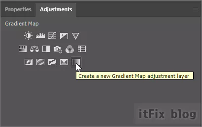 다른 보정 툴들과 마찬가지로 Adjustments 패널의 Gradient Map 아이콘을 클릭해 효과를 적용할 수 있습니다.