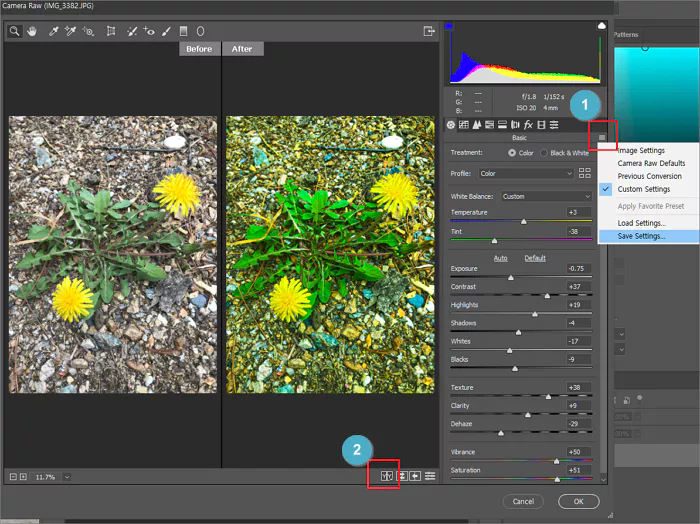 포토샵에서 카메라 로우 파일을 이용한 보정과 XMP 파일의 저장