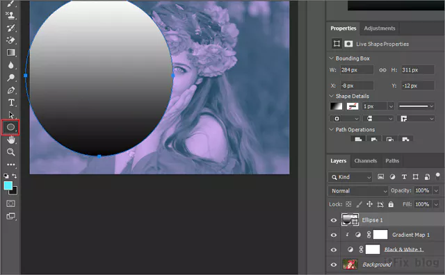 이렇게 하고 엔터키를 누르면 Ellipse1이라는 새로운 레이어가 생성됩니다.