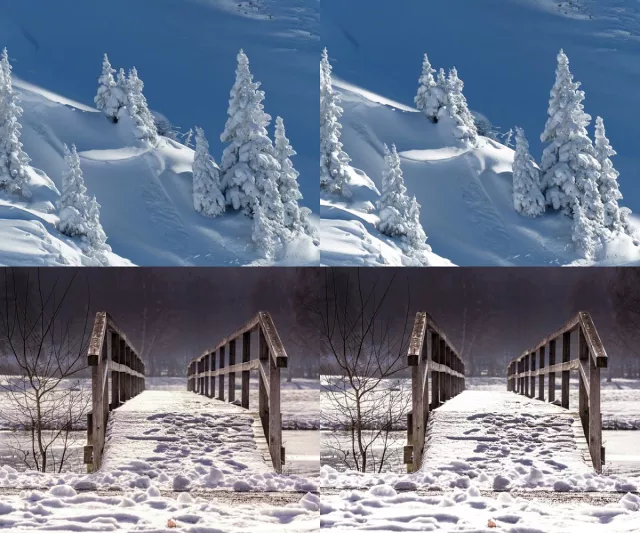 아래의 샘플들은 원본 사진에서 오직 Selective Color 한 가지만 보정한 원본과 결과물들의 비교 이미지들입니다. 미미한 변화 같아 보이긴 하지만 확실히 눈이 좀 더 흰색이 강화된 것을 알 수 있습니다.