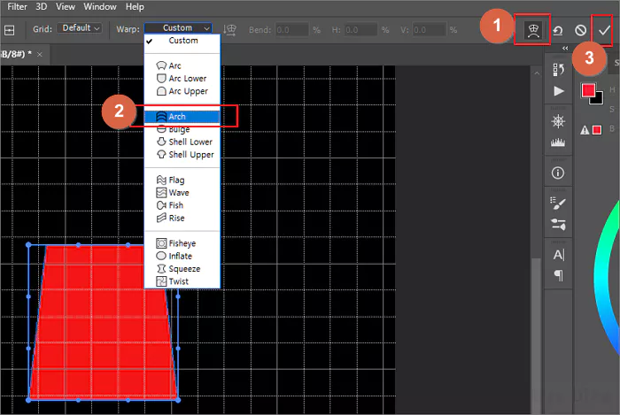 위의 예제에서는 사용자 설정으로 직접 작업을 해 보았지만 이 작업이 귀찮은 경우에는 Wrap 버튼을 누른 후 옆에 있는 Custom을 클릭하고 미리 준비되어 있는 형태중 Arch를 클릭하면 바로 Arch 형태로 적용이 됩니다.